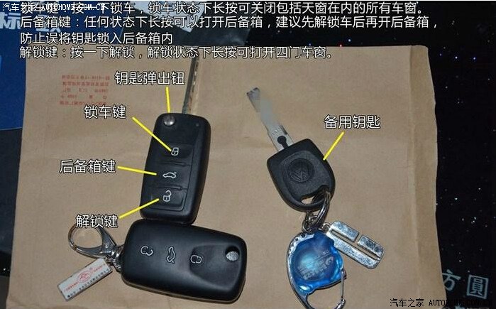 钥匙插下驾驶侧门把手,向逆时针旋转可解琐车子,顺时针旋转则锁上车子,在遥控钥匙没电或用备用钥匙的时候开关门用。