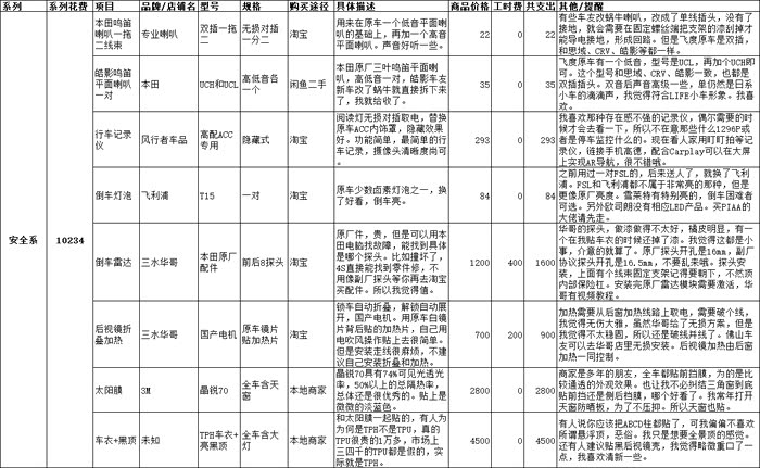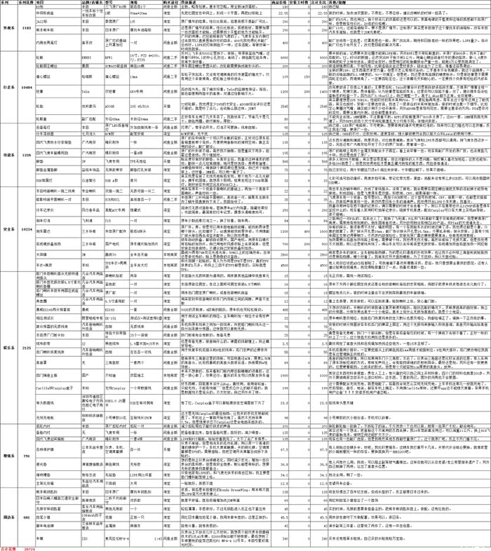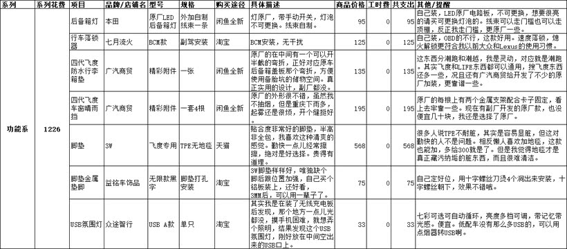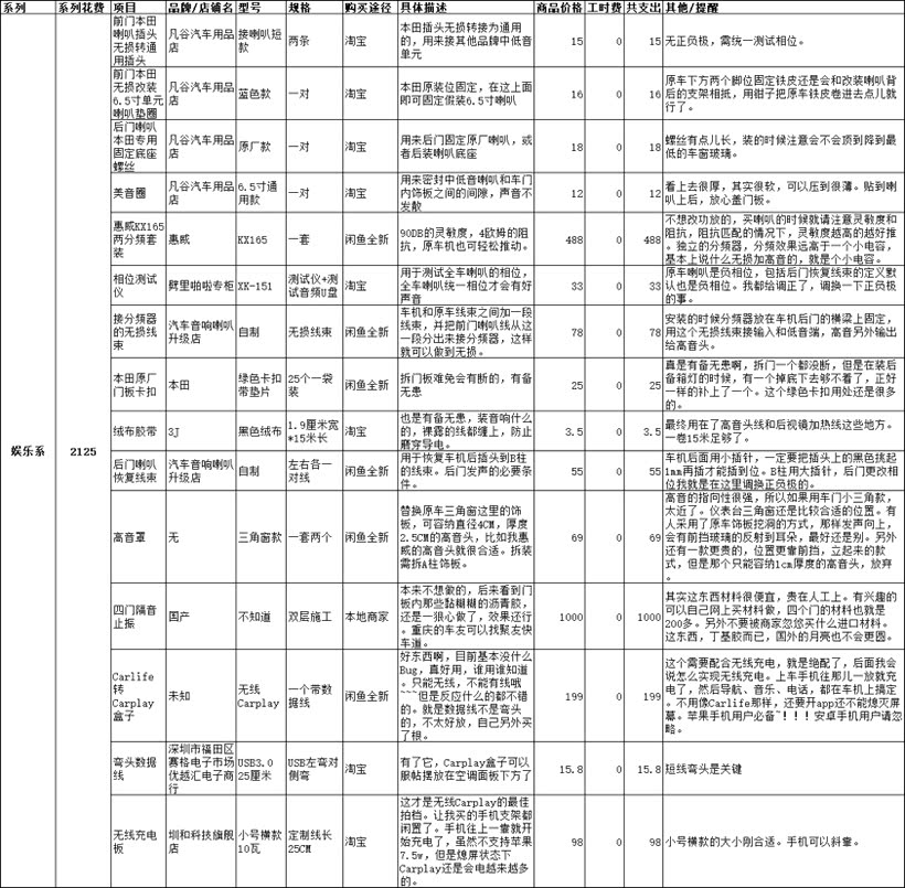 后面图太多,我先上我所有改装的明细表格,包括购买渠道,品牌价格规格,还有我个人看法等。看看2万7都花哪儿了。点开看大图!
