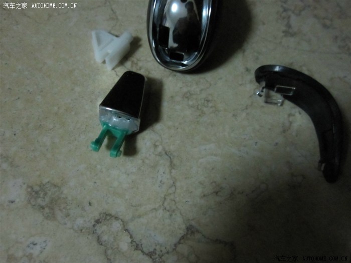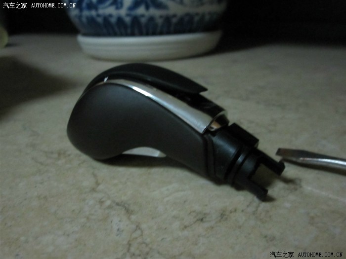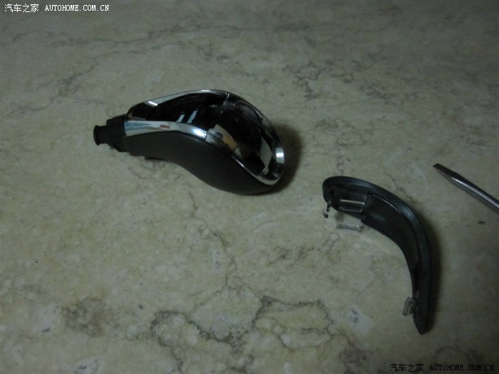 淘*宝买到的档把是磨砂橡胶的,下面这个件从底部可以轻松撬下来,俺把原厂的咖啡色的真皮换到新的档把上了,哈哈^_^