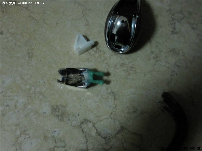 4.取出的按钮(已经用哥俩好,就是AB胶粘好)和白色的塑料件,还有一节弹簧(找不到了)