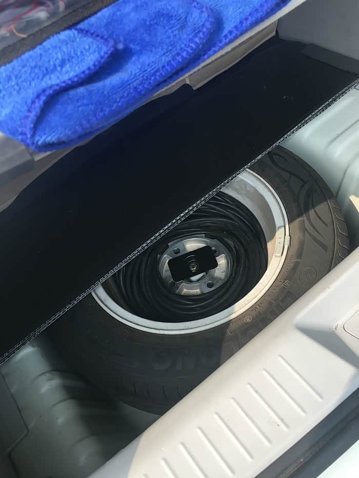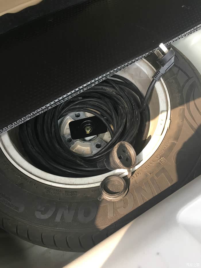 7、备胎+飞线-备胎很有用,飞线20米的,回媳妇老家,去农家乐都可以拖线用充电宝充电