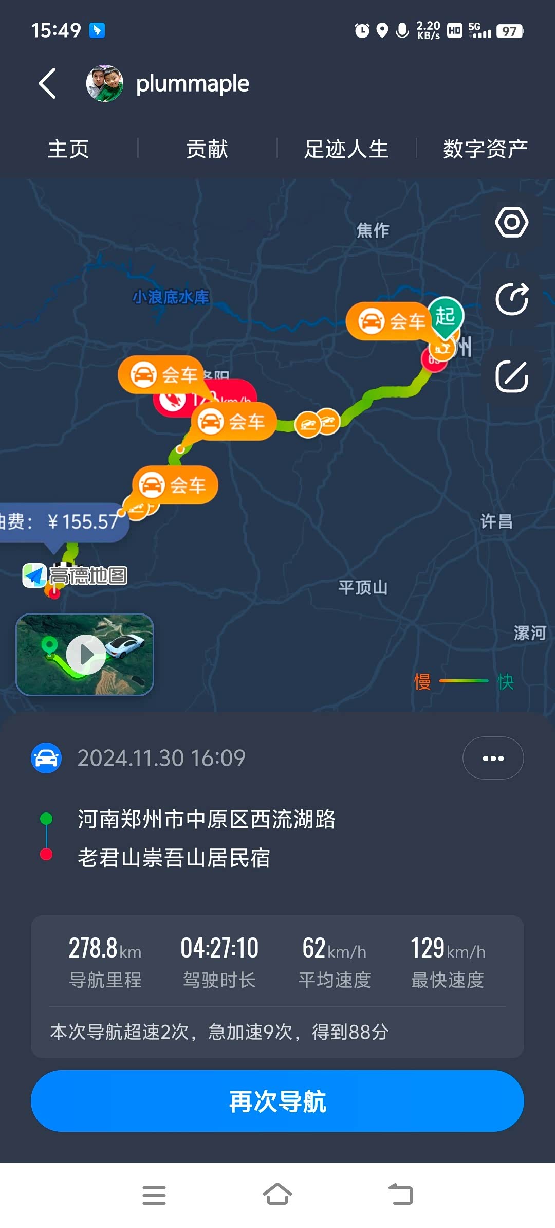 我们一共4家9个人,开2两车。6个成人3个孩子,分别为14岁,11岁,8岁,因为周六孩子们有课,所以我们是周六(11月30日)下午4:30左右出发的。从郑州到老君山,走郑少高速转洛栾高速。豫A牌照ETC到少林寺站下一下再上,从郑州这一段是免高速费的,能省几十块钱吧。
