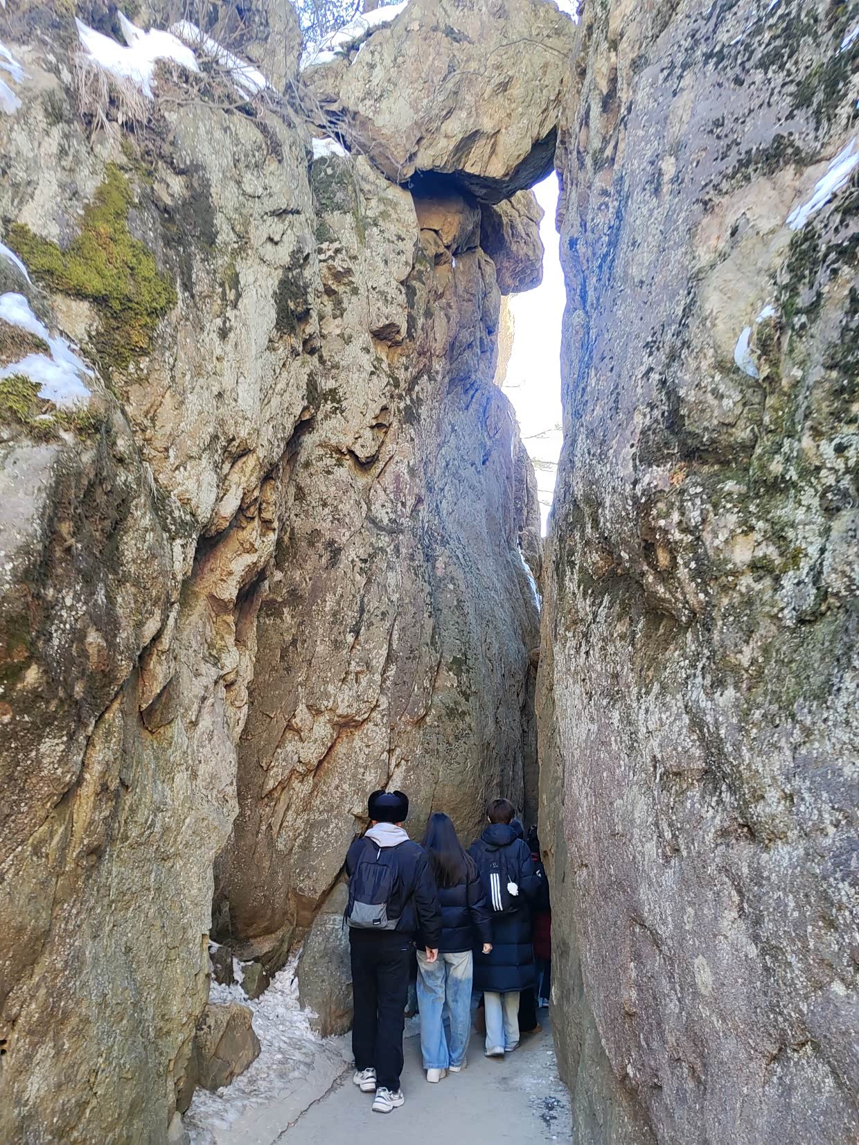 前一段时间下的雪还没有化完。当天温度1-18度,太阳相当的好。我们都穿了较平时厚的衣服,爬山会热,风吹会凉。