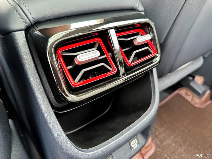 最后不得不提的是后排出风口处的小储物盒。这个小储物盒看似不起眼,但真的是细节满满。现在大家都离不开手机,当后排乘客的手机需要充电的时候,这个小储物盒就派上用场了,可以把手机放进去充电,既不占地方,又能保证手机有个安稳的放置之处,不会因为车辆的晃动而掉落在地上。