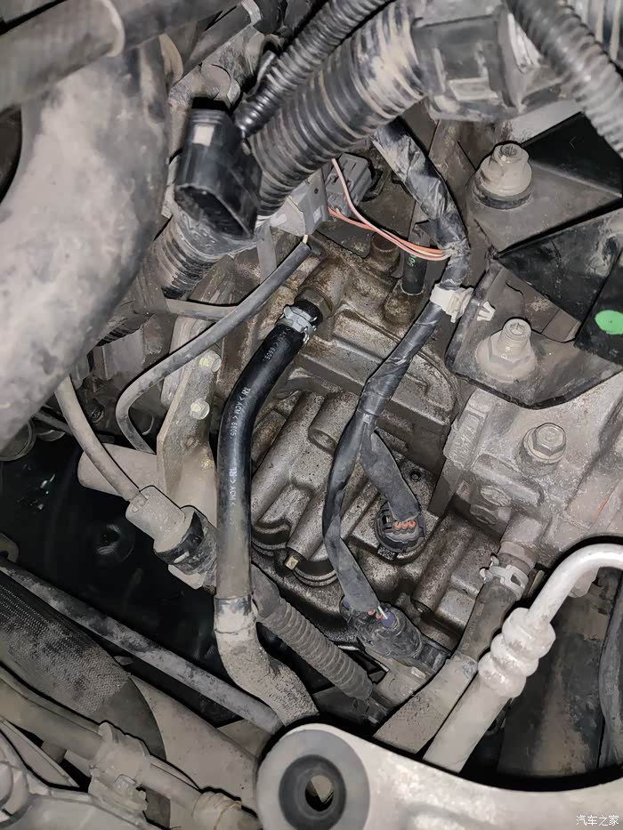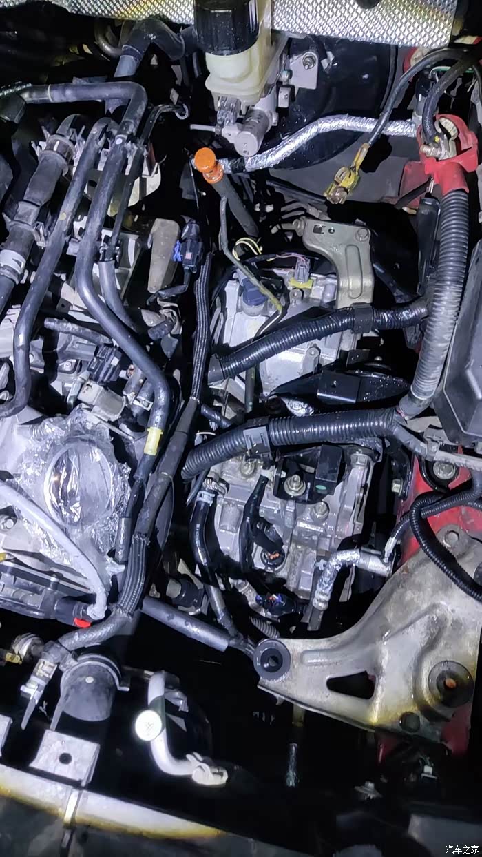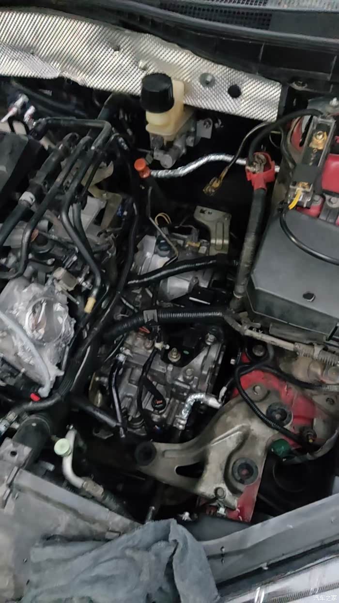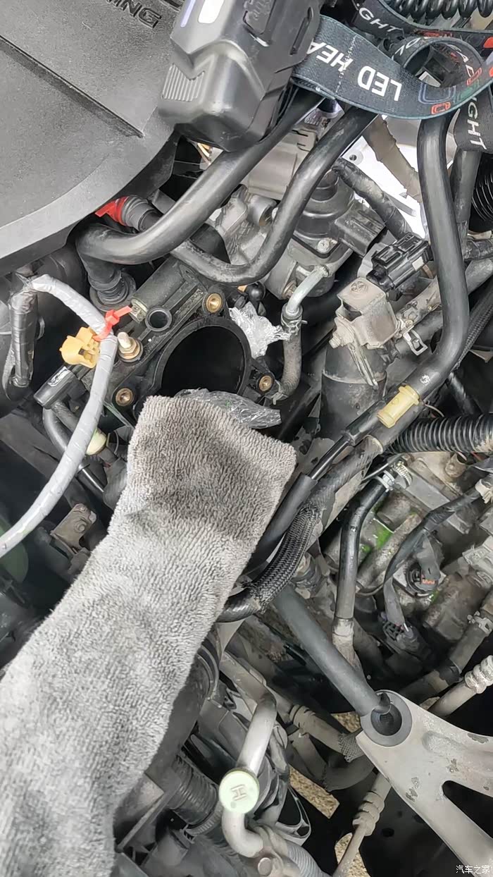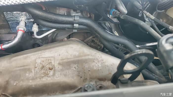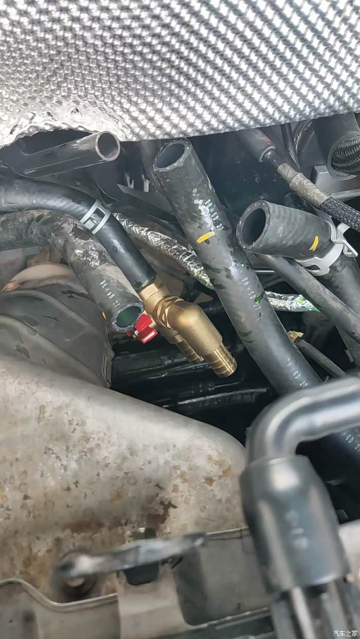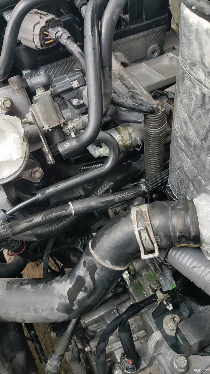 原先想用万向套筒拆,亲测不可行,会顶到四通出水座水管,要把空滤盒拆掉,外面的水箱大水管拆掉,然后用小扳手一点一点拧下来,而且角度刁钻狭小