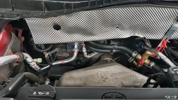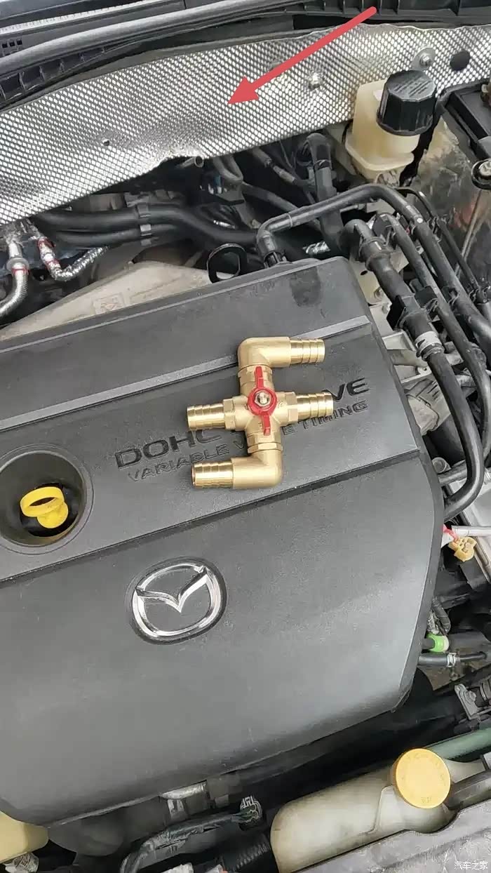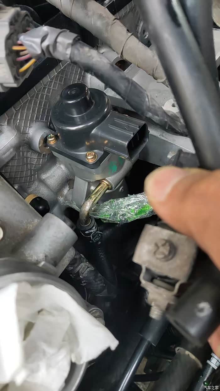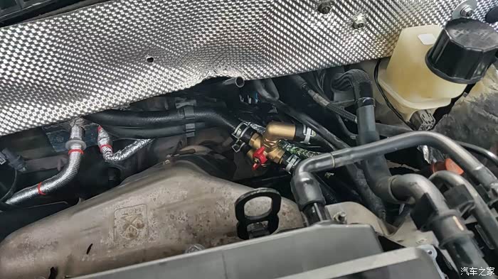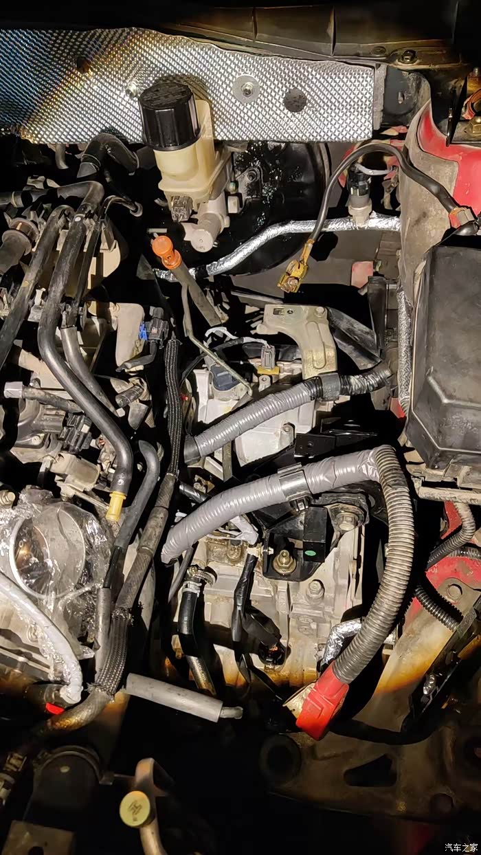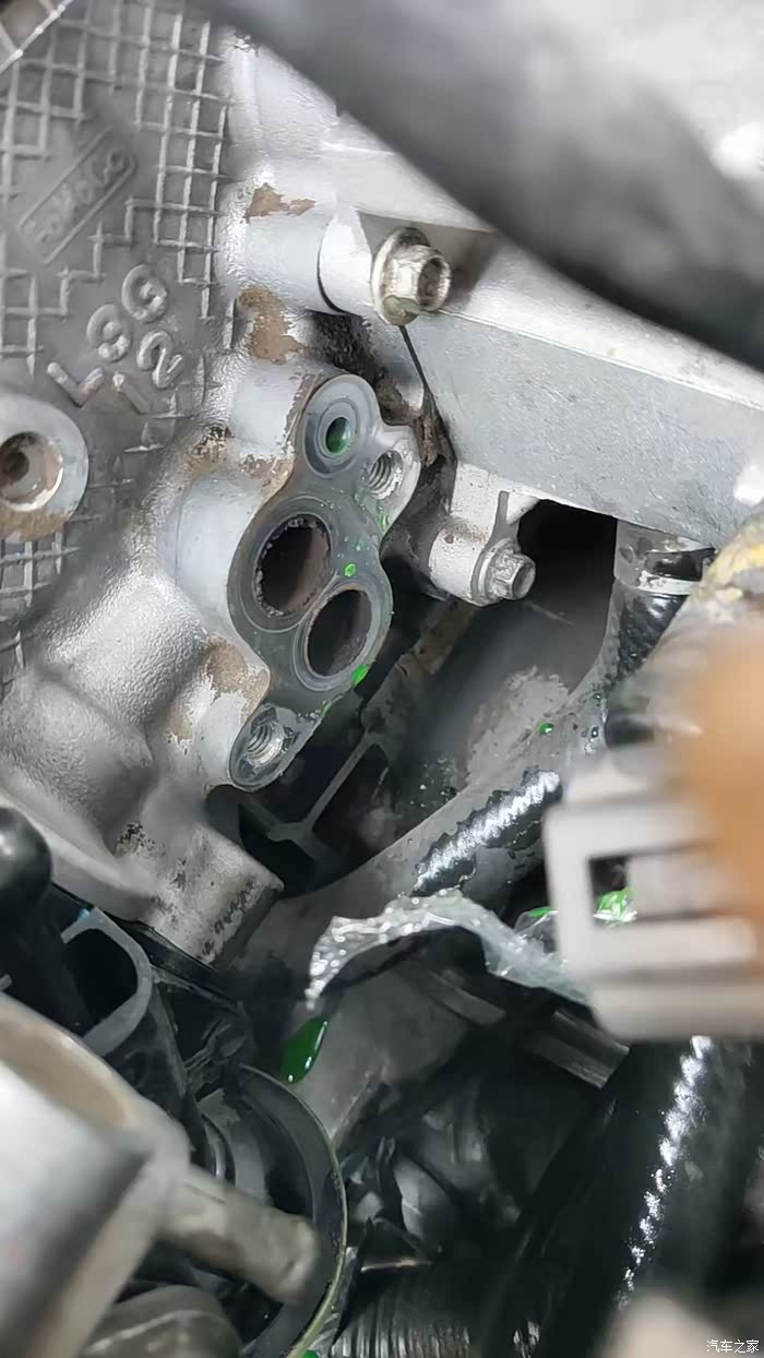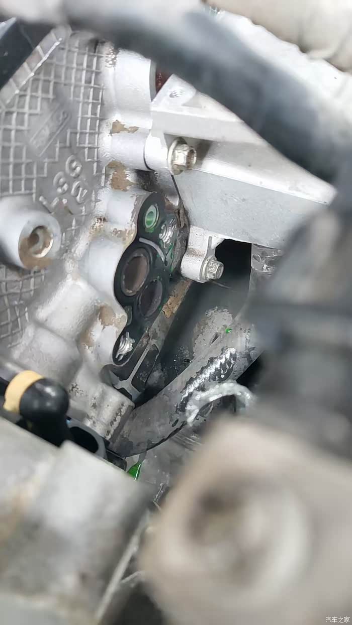 原先想用万向套筒拆,亲测不可行,会顶到四通出水座水管,要把空滤盒拆掉,外面的水箱大水管拆掉,然后用小扳手一点一点拧下来,而且角度刁钻狭小