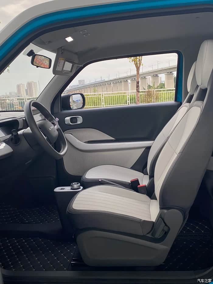 坐进蓝气球驾驶座的第一感觉是视野挺开阔的,车头短,能看到引擎盖末端,这对判断车距很有帮助。调节好座椅后,我1米63的身高头部还有不少空间。