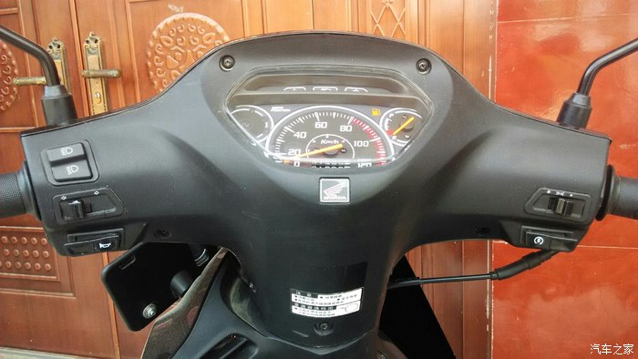 中控仪表。结婚前买的这辆摩托车,5880,上牌又花了六百多。这个排量很尴尬,我家门前有条上坡路,2档上坡跑得很慢,3档又上不动,125毫不费力3档就上去了。这个车14齿的小链轮,想换成15/16齿的,螺口不一样一直也没换成。想换摩托车了,看上铃木悦酷了,12800舍不得