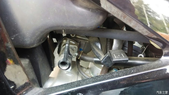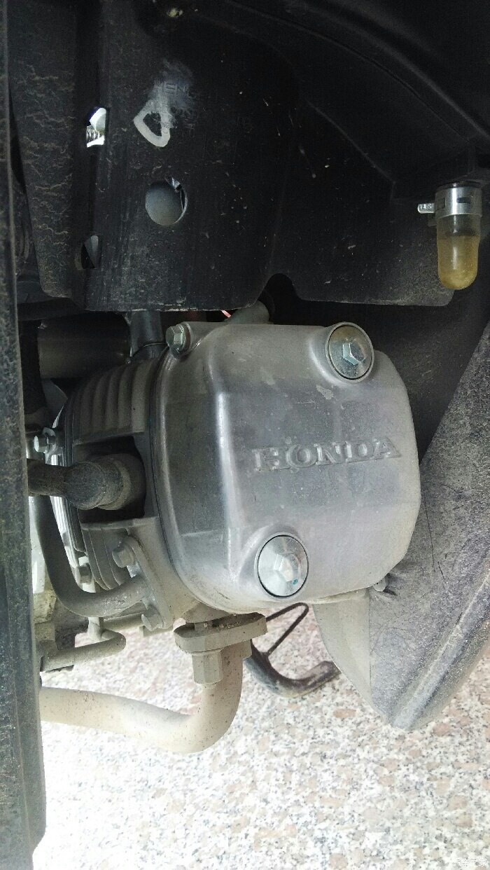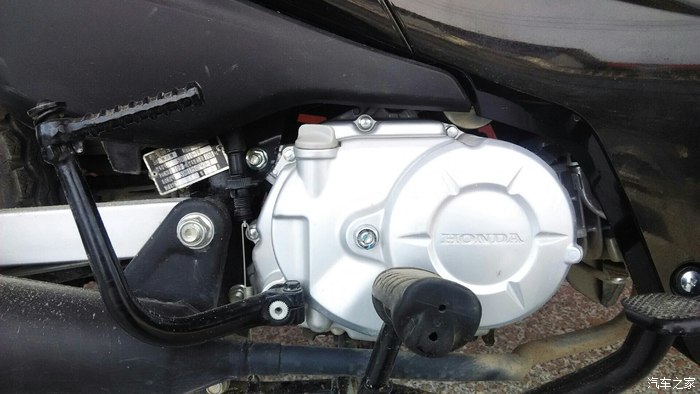 本田110的发动机,没有那种散热槽。左下方的一根金属管说是废气循环的,欧Ⅲ标准