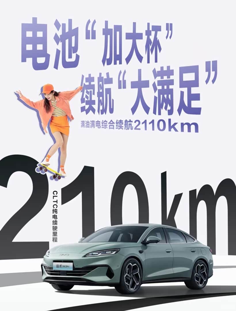 1.续航越级,210km纯电(CLTC),同级多120-180km;一周一充通勤不烧油,综合续航2110km,比帝豪L Hi·P(101km)等翻倍,长途无焦虑,碾压式存在!