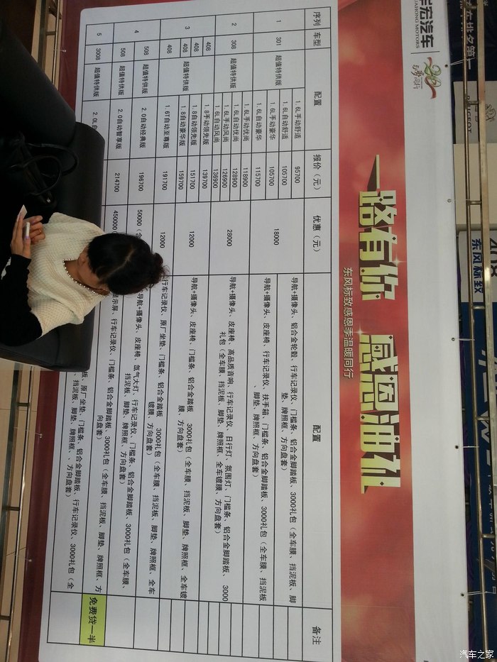 选中车型之后就是去四儿子店看车、订车。南昌共有三家标致四儿子店,高新的亿鑫、青云谱的华宏、英雄桥头的东富。周末一有空闲就带着媳妇奔去店里砍价比价去了,晚上就在汽车之家论坛里看其他车友的购车攻略。对于一些以前一见就反感的汽车专业术语,准备买车后就在今日头条等APP上关注了汽车栏,每天没事就刷屏看一看,久而久之也就不感到陌生了,再遇有不懂的就问度娘或找视频学习。总而言之,只要感兴趣,都能学得好。