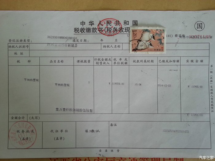 购置税发票,好贵