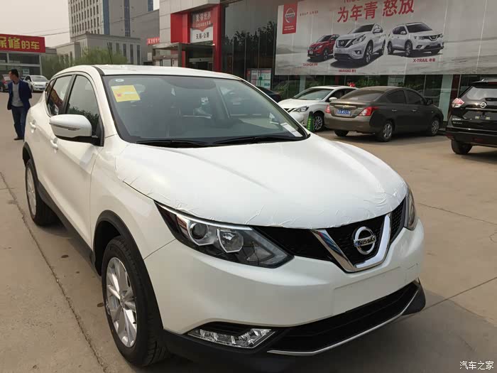 看到这大家会问的这些车都是轿车怎么最后提逍客了。原因吗当然也是我们家“家主”的建议啦,毕竟第一辆是轿车了换车还是换台SUV吧。SUV的优点视野好、底盘高通过性强等等我就不再多废话啦。要是老婆大人直接说换SUV干嘛还去看轿车,女人啊.........。不过现在回过头想想老婆的想法也没错,我们家毕竟不是“土豪”买车对于工薪家庭来说也不是一笔小数目,当然是满足需要的前提下全家皆大欢喜才是最重要的。回到主题选车,这下就简单很多了,这个价位的SUV要比轿车可选择的余地比较少。最后就是在标致3008和逍客之间做决定了。先说3008价格优惠幅度大,内饰做工要比逍客强上不少,空间我感觉和逍客错不多唯一喜欢的就是3008的后备箱设计要比逍客强太多了,性能上来说我自己感觉也和逍客差不多都是2.0的排量(1.6T的超预算)至于说安全性上毕竟是法系要比日系强这点我还是不怎么认可的。我开车很多年啦多多少少也出过事故,我感觉行车安全最重要的还是取决于安全驾驶意识又跑题了,呵呵。最终放弃原因的有几个:1、3008上市是2013年据说今年改款版也要上市新款也只不过是外观,动力方面基本没有变化价格肯定短期不会有太大的优惠不想等了;2、试驾感觉没有逍客轻快些(3008是电子液压助力要比逍客的电子助力重一些,但指向性和对路面的反馈要比逍客强,这也是两种转向助力比较明显的区别),老婆是新手简单轻快一些还是好的;3、试驾过程中感觉3008的噪音控制上不如逍客(我个人比较在意的),这一点不排除3008试驾车车况个例因素但是不管什么原因对人的第一印象是很重要我想这一点大家不会太反对吧;4、3008的油耗高也是事实,差不多的车干嘛不选一款更省油的呢。 最终综合考虑后定下2016款新逍客。车型定下了就是和4S的讨价还价了,这中间也没有大家想想的那样激烈。这里插一句至于选择2.0精英完全就是因为性价比好些,其实对于新逍客选择比较多的就是精英和豪华了。豪华款最主要也就是全景天窗和360度全景影像,不能开启的全景天窗我感觉比较鸡肋唯一的优点就是车内采光好,但是带来的就是隔热问题。济南夏天是很炎热的头上顶个大玻璃窗还不能打开想想就受罪。360度全景影像很实用,我这样老司机都很满意对于新手来说简直就是福音啊。至于18的轮毂、行李架、半包的真皮座椅对我来说实用性不大可以忽略不计,1.5W的差价买来个唯一实用的360度全景影像太亏了,呵呵我是一个实用主义者。车型选好就是价格啦,济南日产4S店我知道的有4家据说都是一个老板开的。新逍客济南这边的优惠幅度很低,3月份去咨询的时候现金优惠5000,没什么礼品可送(方向盘套,脚垫这些零碎除外都是不值钱的),济南4月份有车展就把最后订车考虑到车展期间了。前期的选车真是很累人的但订车提车却简单的很,原则就一个哪家便宜选哪家,最后订车价格是现金优惠1W(没办法济南的优惠力度就是不行啊)白色加2000,送全车贴膜、发动机护板、底盘装甲、倒车雷达还有些零碎,还有就是206置换给了个1.55W的价格,反正比其他4S店给的价高。4月11号订车提车整整忙活了一天挺累的。