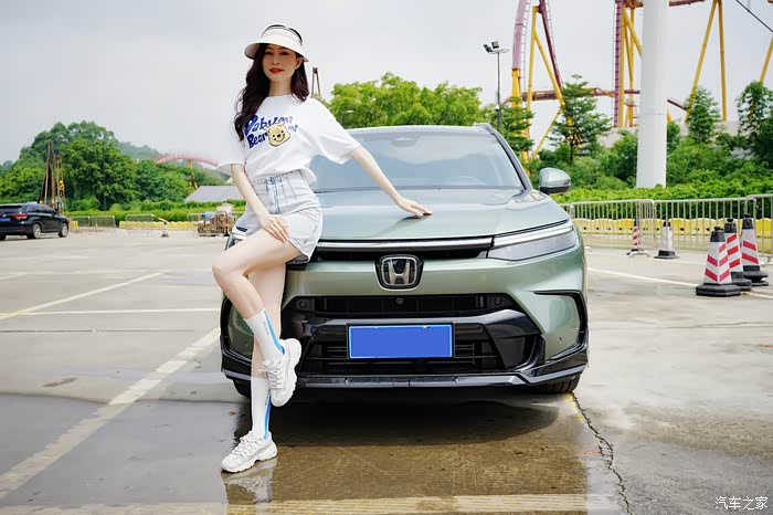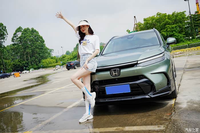 车子的曲线与美女的曲线呼应