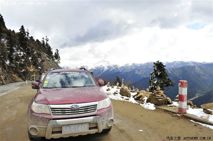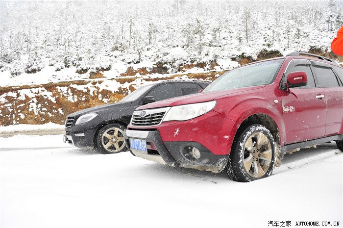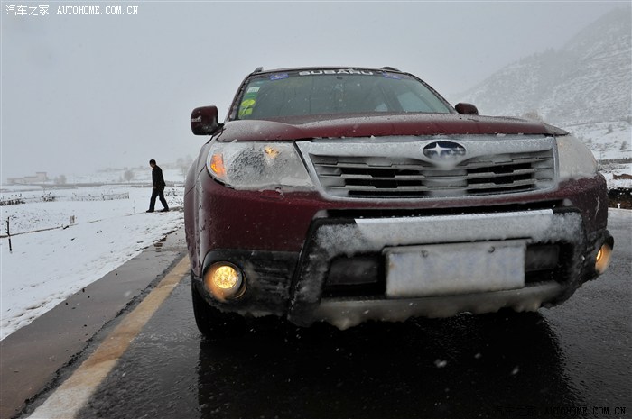 快到山顶,路中间由原来的白雪变成了冰面,这里再次验证斯巴鲁的强项,冰雪先驱,一马当先,一路没有掉链子,全程冰雪路况没有一丝的甩尾没有一丝的侧滑,这段路面还不算啥,在最高的东达山山上丰田FJ、4500均有滑下深沟,唯独小森全时全驱勇往直前。说一句我亲爱的车车,爱死你啦