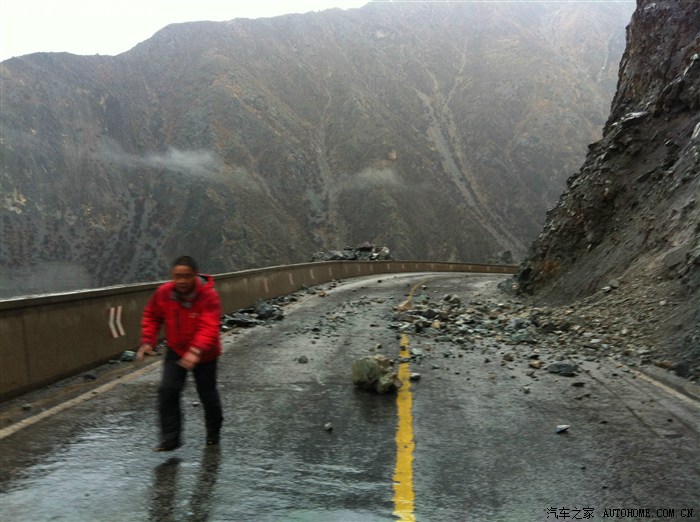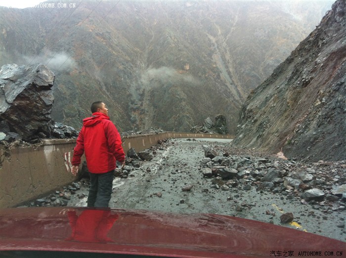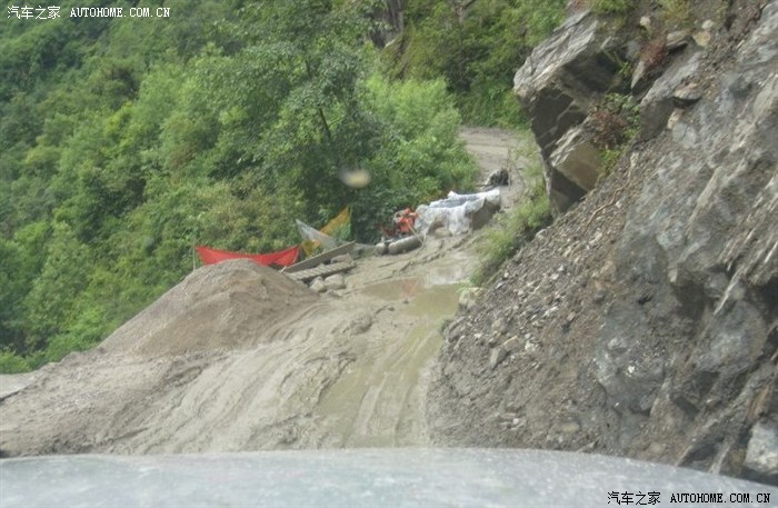 在艰难的行进中终于下得山来,可就是在这小镇,路遇泥石流滑坡被堵,在路上吧有时候就得有勇气有激情有胆识,在一番侦测后我断然绝定闯过泥石流,狭路相逢勇者胜这句至理名言我是深信不疑,我对自己有信心对小森更是信心十足,我相信我这伙计,他可是全时全驱,考验他的的时刻来临,急速赶到泥石流前面,很稳妥的降到最低速度,挂号手动2档,缓加油,当前轮进到泥石流还不觉得有难度,车依然不紧不慢的前进中,可当四轮全部进到泥石流当中时,我突然感觉车在缓慢侧滑,不是因动力引起的侧滑,明显是泥石流受到外力后开始往低处流动,由于高低悬殊大,泥石流的运动带动车子整个往低处滑动,这时候底盘已经到了极限,感觉整个车子趴在泥石流上面,如泥中暗藏大石头就有可能托底导致车子底盘挂上而失去抓地力,我手心都是汗水,车的动力开始出现减弱,没有时间停留,没有时间考虑,右手迅速降到一档,大油门跟上,一番轰鸣后,车头逐渐昂起,随之轰鸣着昂首突出重围,小森不是盖的