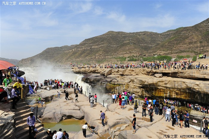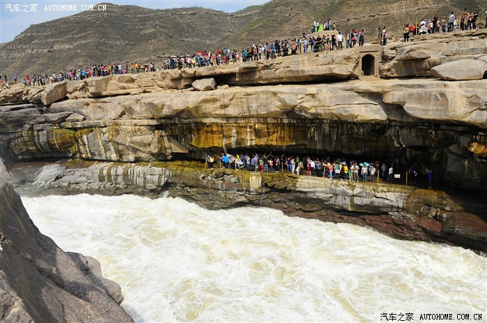 到处都是人。对面就是山西境内的游客