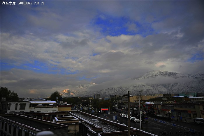 远处好像是香格里拉的一个文化中心什么的,修建的外观就如一座寺庙,也许这是藏族特色的一个开始吧,看见玻璃上的水珠了吗?那可是雪呀,整个城市灰蒙蒙的,我的心情完全被这份厚重笼罩。