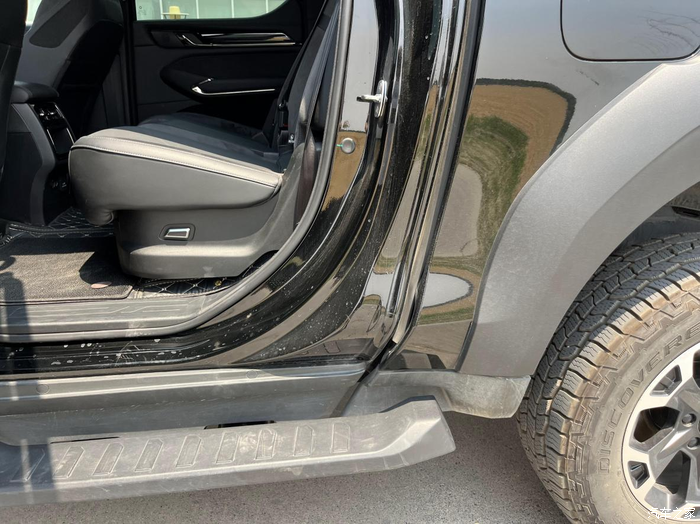 大面积的皮质和翻毛皮混搭的座椅,包裹性和支撑性都无可挑剔。中控的设计简洁大气,钢琴烤漆和金属拉丝面板的搭配,让整个内饰的质感非常出色。客户坐在副驾,也会惊讶一台皮卡能有如此细腻的做工。