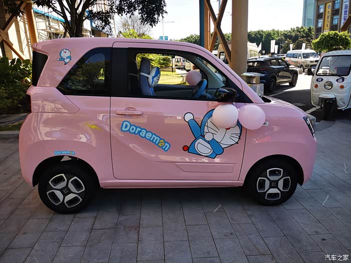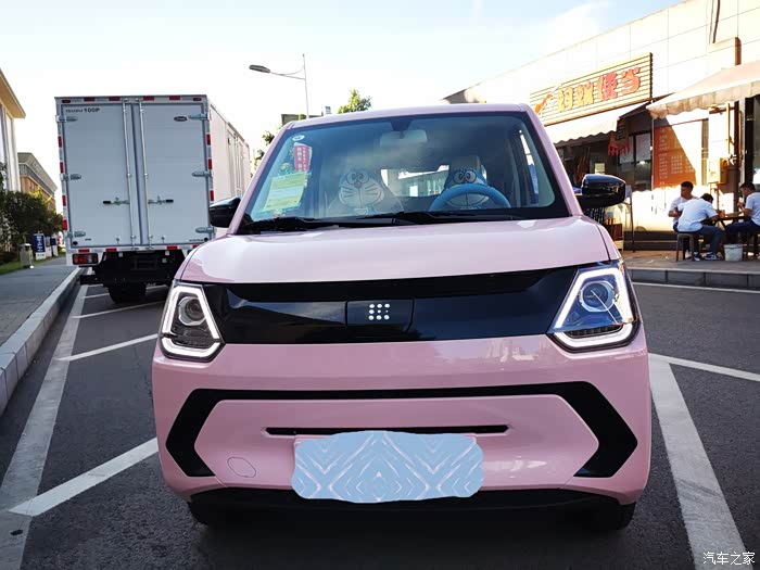 车身空间还不错,接近3米的车身,有1.9米的轴距,离地间隙有135mm。个人感觉比宏光mini和QQ冰淇淋的空间要大和要长一点的,不管是我开 ,还是我老公来开都没有问题,头部和腿部空间都有富余。嫩粉色的外观颜色,左后窗那里都有一个糖果的标识。LED的前日间行车灯(但是大灯是卤素的),加上漂亮的贴花,就像是给它穿了一件漂亮的外衣。前面驾驶室和副驾驶室之间是通的,没有传统油车那种隔断在里面,就显得驾驶室的很宽敞。后排有两个儿童安全座椅接口,满足2胎家庭的需要。