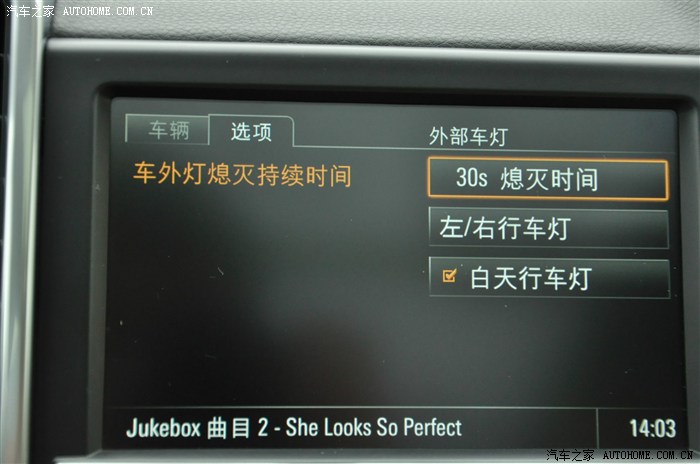 以日间行车灯的设置为举例,设置路径:car - 选项 - 设置车辆-车辆功能--车灯与能见度--外部车灯-