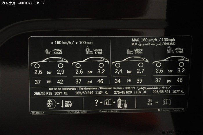 胎压,这个根据大家的使用环境自己调节,左侧B柱下有建议胎压。