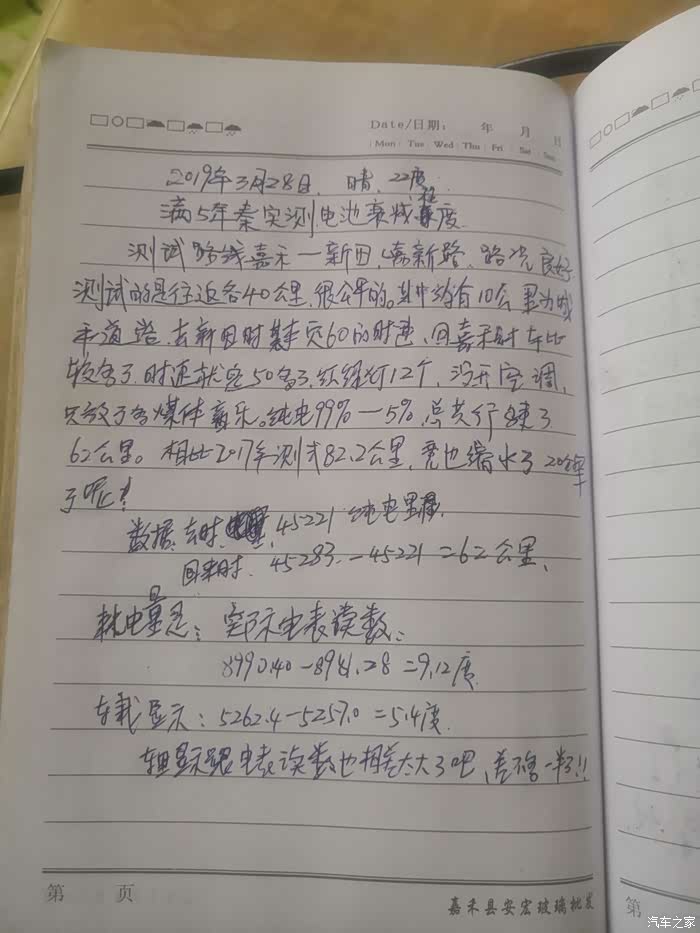 14款秦过几天就满5周年了。总里程8万3千多公里了,纯电也有4万5千多了。昨天没事天气好就去实测了下电池衰减到什么程度了!测试路线是嘉禾到新田路段。出城进城10公里是30--40的速度外,去的30多公里基本上是定速61公里,回程车比较多,有部分路程是50 左右的速度。全程路况很好,没有什么大陡坡,也没有大长坡,经过了12个红绿灯,全程没开空调,多媒体音乐还是在放,就我一个司机开车,尾箱装有差不多100斤货。测试路段是往返路程很合理的。纯电100%到5%强启动,总共行驶了62公里,相比2017同期同路况测试82公里还是衰减减了不少!不过官方标注是纯电70 公里,现在还有62的续航,应该还算不错了吧!!