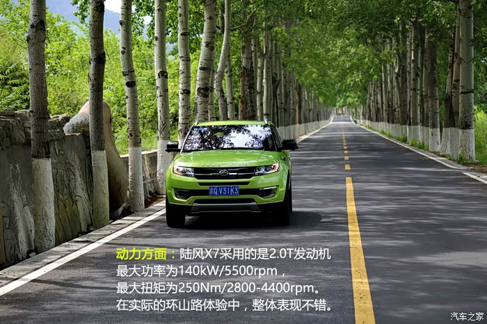 三天的试驾,主要体验了陆风X7在山路的稳定性、操控性,以及在城市中的动力表现、燃油经济性。2.0T涡轮增压发动机搭配8速手自一体变速箱,最大功率为140kW/5500rpm,最大扭矩为250Nm/2800-4400rpm。在实际的驾驶过程中整体表现还是不错的,整个升档降挡都很平顺,燃油经济性也不错。