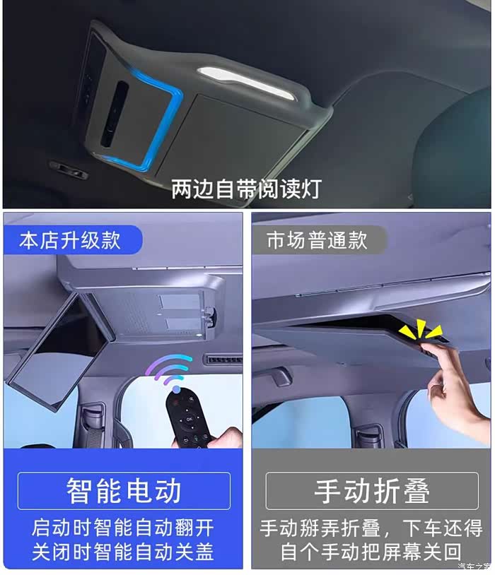 ,毕竟门外汉还是要先做些功课,和一些商家的沟通后了解到,车载吸顶电视里销量比较高的就是“潮派精灵”和“大篷车”(这里不算打广告,大家几乎都知道的牌子)