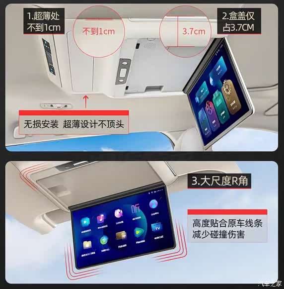 ,其次是给孩子看动画片),安卓吸顶电视几乎都是国产500元价位平板的水平,至于为什么要卖几千元,当然是有商务车属性加成,其次是为了卖开模具的钱。但是你要说不如挂两个iPAD在前排头枕后面,价格没这个贵,速度还比它快,为什么还是这么多人选吸顶电视,难道就为了电动屏幕缓缓打开那几秒的仪式感?