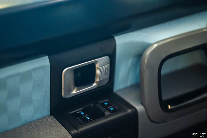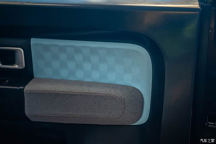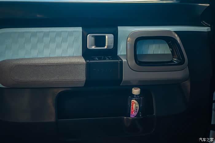车门由织物和工程塑料两种材质混搭组成。