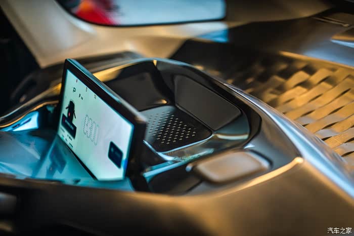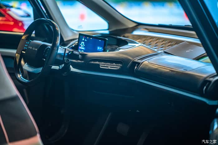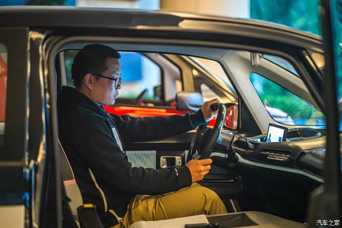 此时的车内仍是被大量的黑色工程塑料包覆着,并不是最终的量产状态。