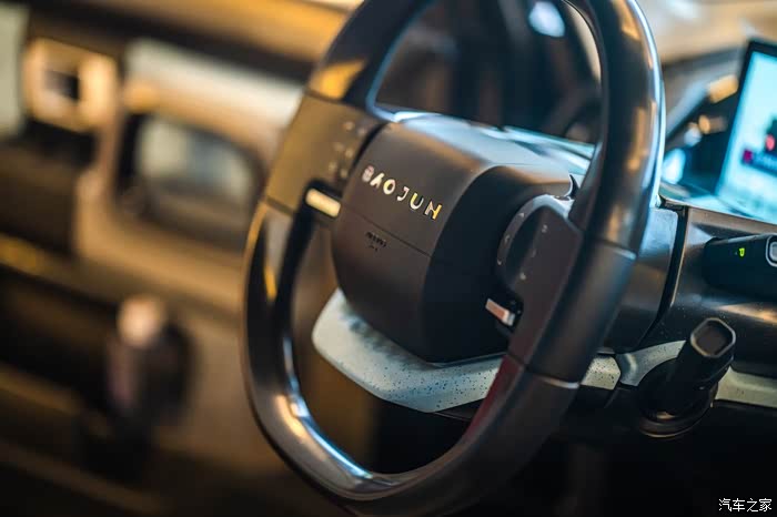 宝骏E300使用了双色分离式座舱的设计。把前轮布局到A柱之外,最大程度地优化车内空间。