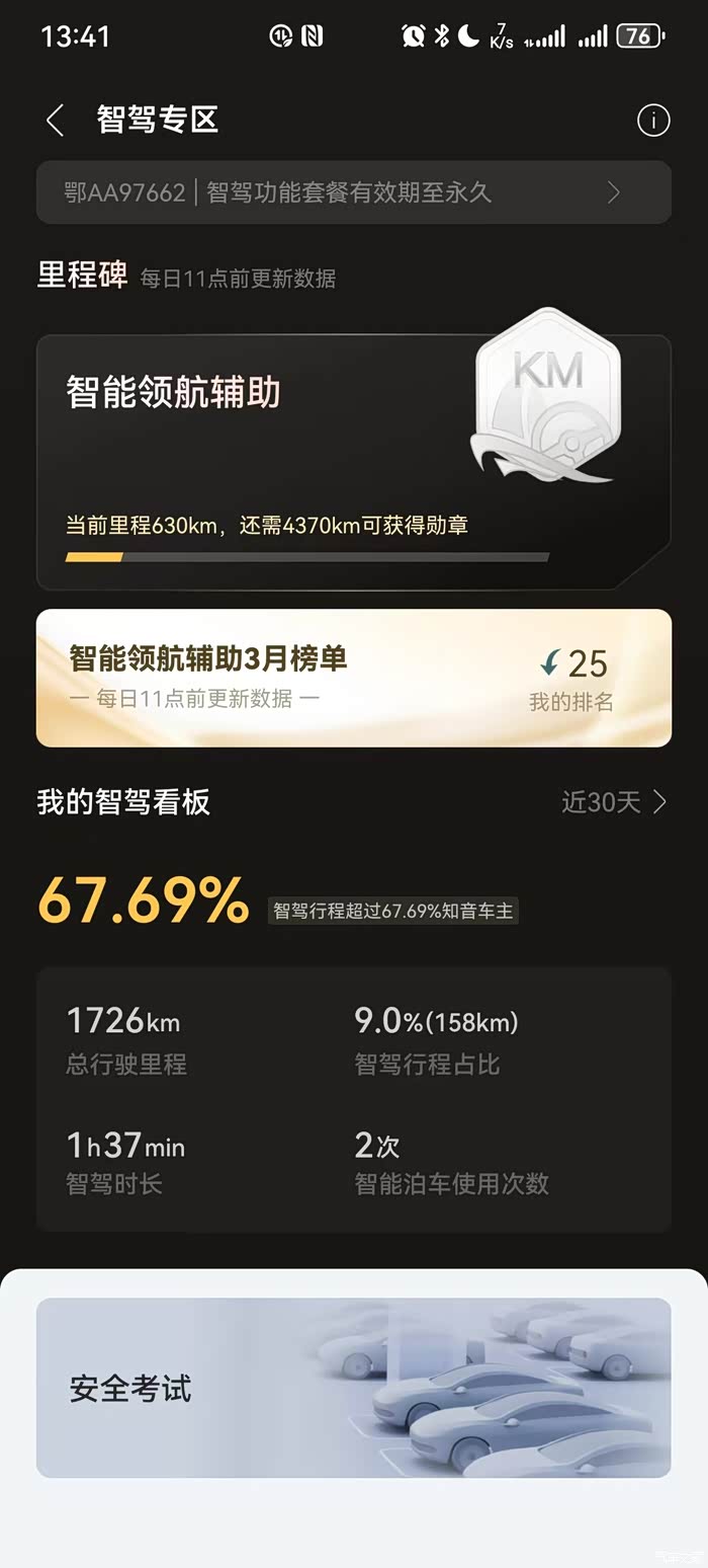 虽然我的知音驾驶10000公里了,但其实也有一千多公里都是智驾帮我开。最开始我也觉得知音的智驾很一般!但是后面真香了!平时不止高速上会使用,上下班途中,在高架上也会使用。甚至是堵车的时候也会使用!堵车的时候打开智驾,知音可以自动起步,保持跟车距离,不用自己频繁踩刹车,真的很方便!科技真的改变生活,给生活带来了便利!