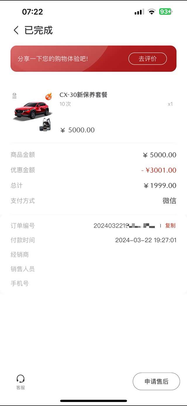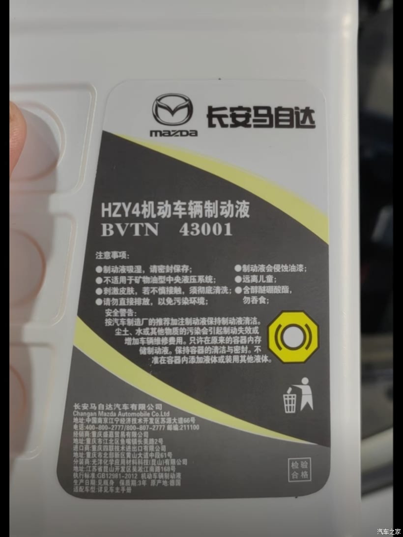 目前CX-30综合油耗7.0左右,平时只是上下班代步用,偶尔回老家跑跑长途,所以只做了一些基础保养,还有更换了刹车油。在2024年7月11号那天,4年,5万公里左右,那时候在车友群里看见有车友更换了刹车油,于是我也去看了一下保养手册,问了4S店售后人员,也说可以更换了。我想这关乎着行车安全,而且也不贵,因为我是会员,三年后免工时费,也就73块钱,趁着周末,于是就去把刹车油换了。