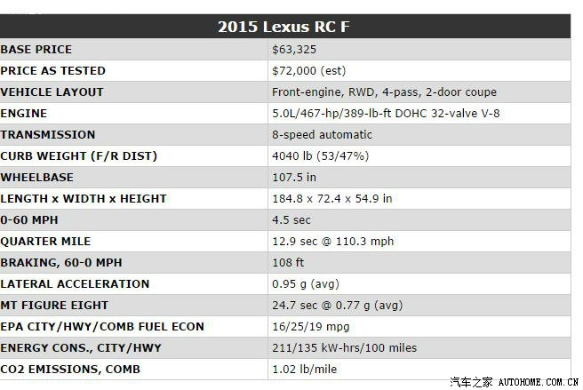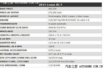 MotorTrend首测RC F:http://www.motortrend.com/roadtests/coupes/1409_2015_lexus_rc_f_first_test/