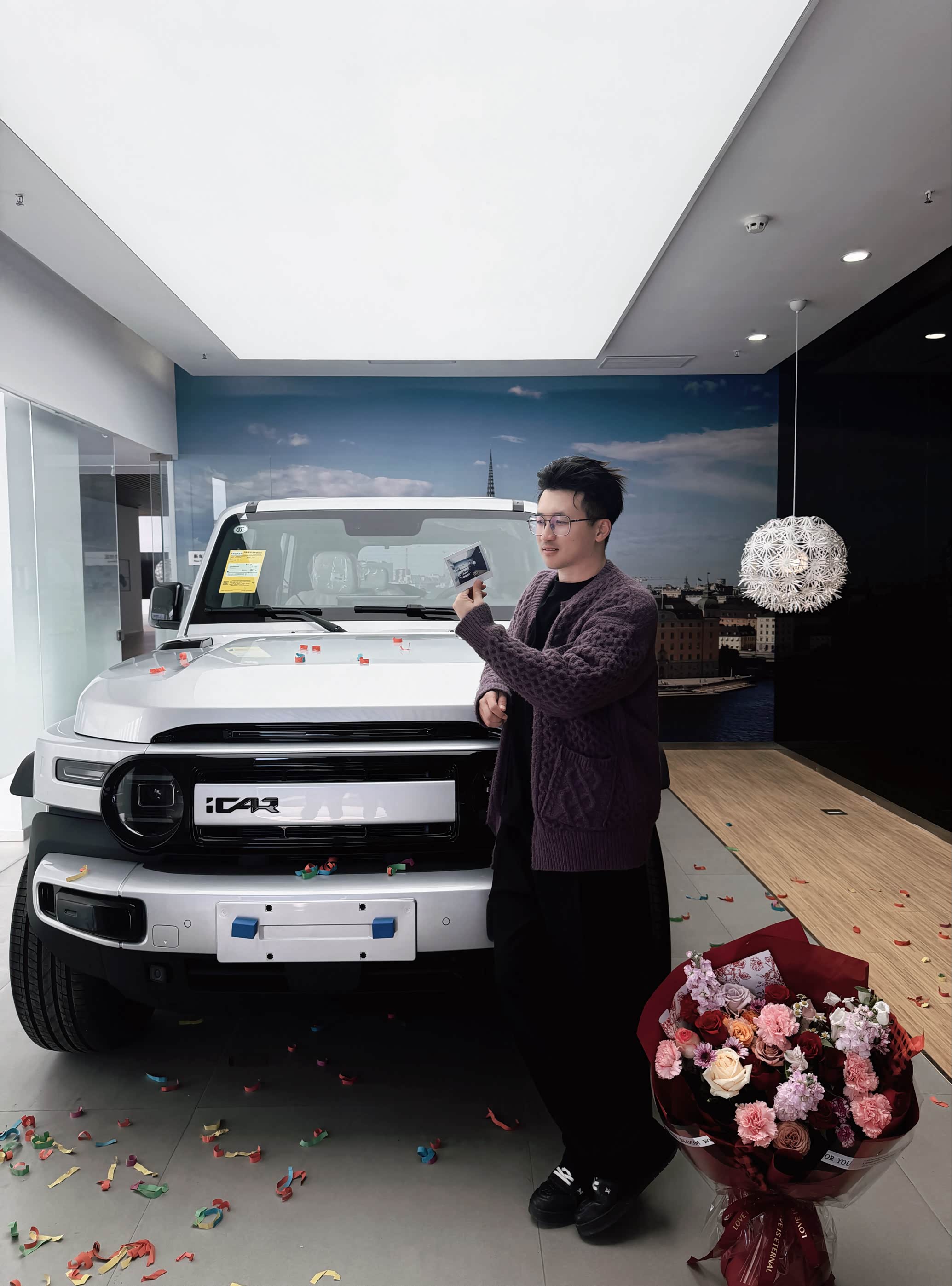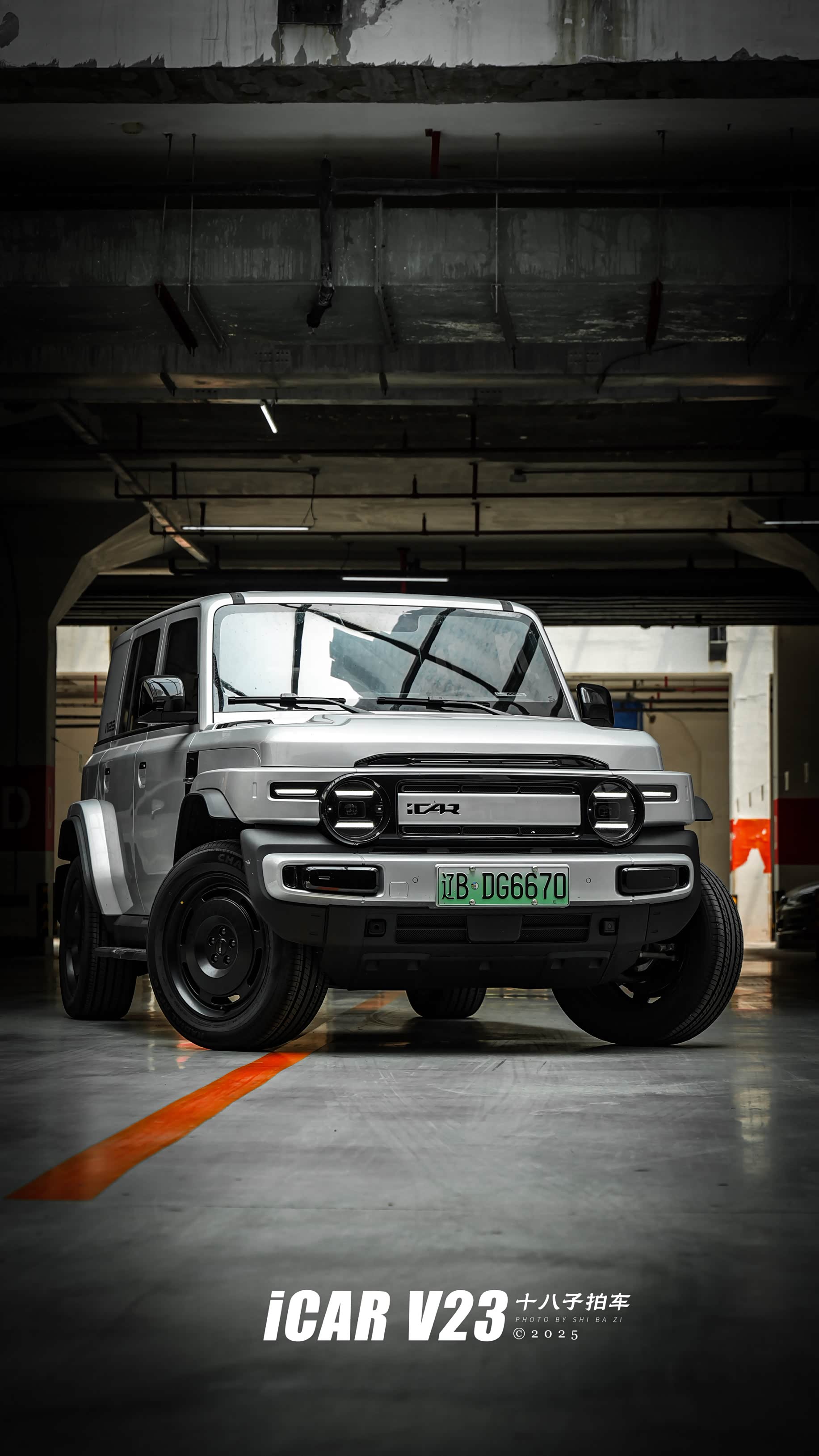 大家好我是十八子,iCAR V23这个车在刚面世的时候它的外观一下子就把我吸引住了,复古的方盒子造型融入了现代的科技感,那个男孩子能抵挡住这种诱惑啊哈哈!第一次看它是在2024的北京车展上,本来看图片我以为会是一个比较小的车,没想到看到实车后还是蛮大的,宽度高度够很够用就是长度稍短一些,这个我倒是可以接受,于是心里的种子就被种下了。一直到最近我终于给他拿下了,为了拿国补,我选择报废了我那辆精心改装的标致206让它发挥一下最后的余热,我的五菱GB也让我卖掉了,最终换来这辆V23。