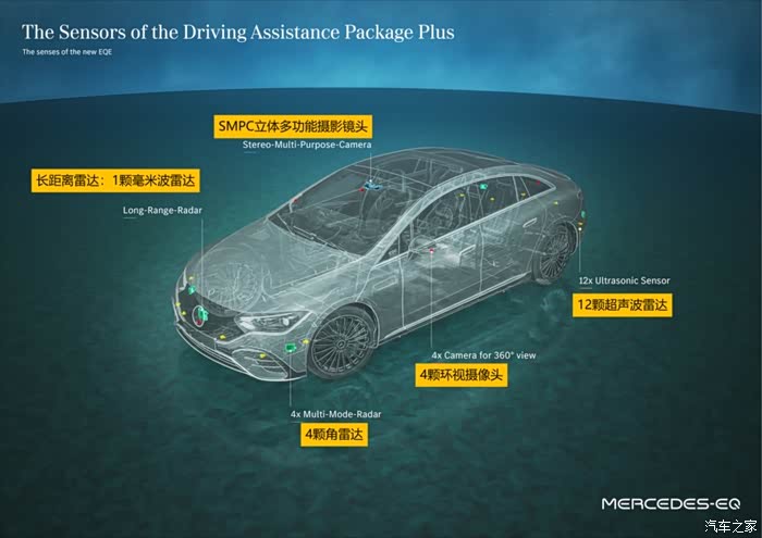 但实话讲,升级前的L7驾驶辅助硬件已经算是落后的了,横向再看看其它国产友商,极狐阿尔法S HI版是34个传感器芯片算力200tops、小鹏P7i全车搭载31个自动驾驶传感器orinx芯片算力250-500tops、蔚来ET7全车搭载33个传感器,4个orinx,算力1024tops!所以这么一比,奔驰eqe搭载的驾驶辅助硬件简直是上古时代的产物。