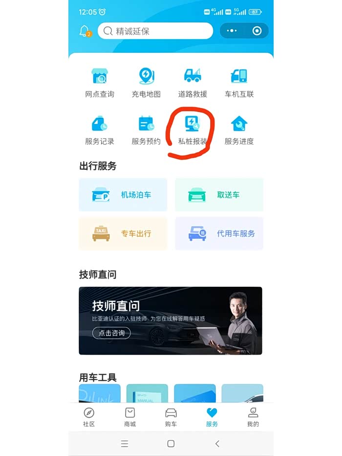1.微信小程序"比亚迪汽车"-服务-私桩报装(注意哦,APP上面暂时还没有这个功能,只有小程序有,图五示),好像还没提车只要有了比亚迪账号就可以申请了,当时销售小姐姐没告诉我,提了车才申请磨磨唧唧也搞了个把星期。