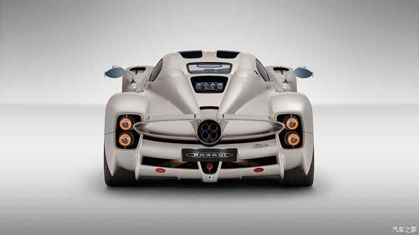 车身尾部设计的比较复杂,车尾配备了双主动式扰流板,紧凑排列的圆形双尾灯以及椭圆形的散热口还有中置四出的排气尾管,将帕加尼
