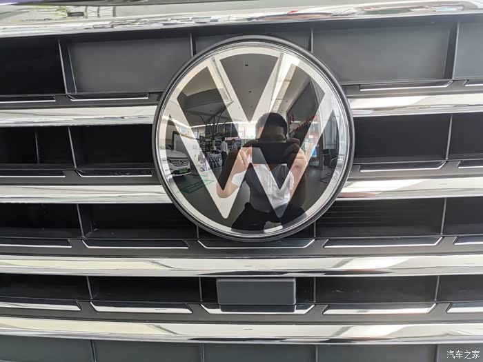 最后,再拍张双人车标。像我这种对大众有特别情怀的人,就喜欢这个标志背后的溢价。请忽略我帅气的倒影。