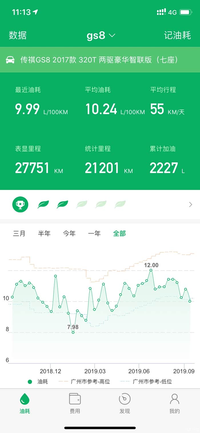 汽车油耗高低,跟司机驾驶习惯有很大关系,我家车是17款传祺GS8,油耗一直在7.5-8.5之间,