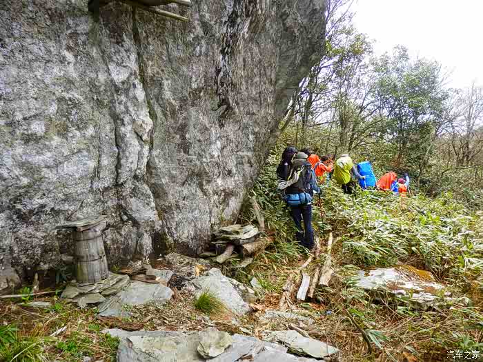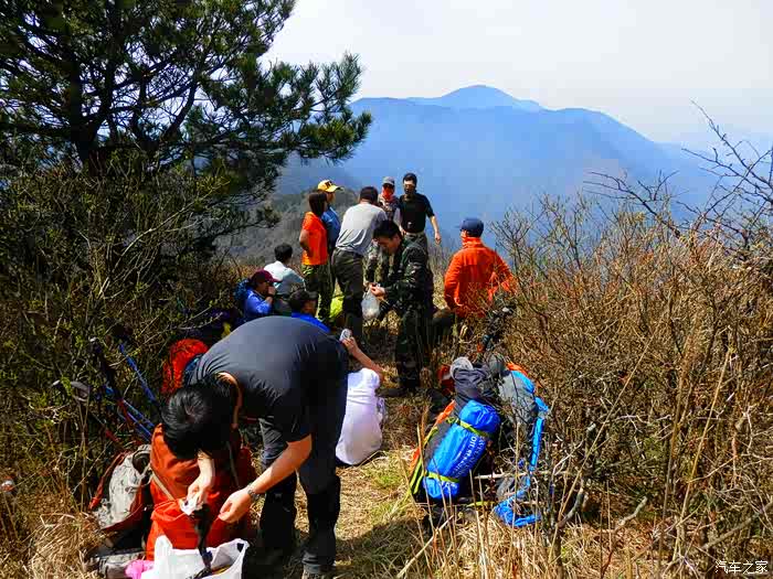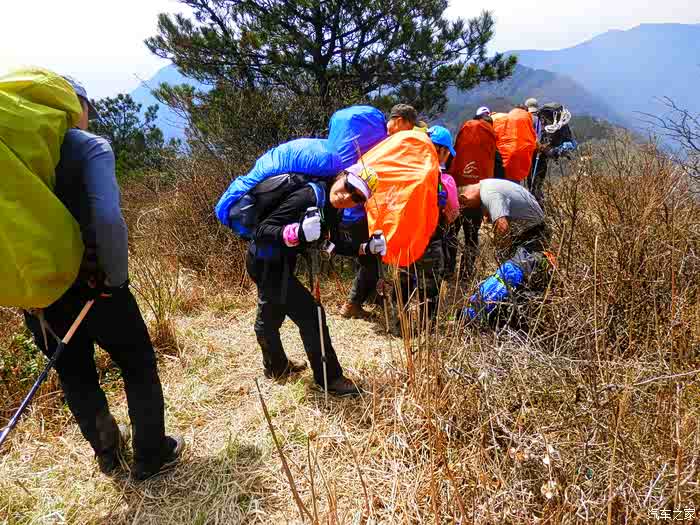 过瀑布,沿着峡谷继续向南攀登,跨过五处山间溪沟及其间的几处茶山,上午约9:30分大家来到了六股尖东面的哑口,就地休息。此时,我才知道,这次出来有31名同学,有2名因故退出活动。下撤的其中之一者,我对他影响十分深刻,是个小年轻,曾经自我介绍,说自己爬山如何了得,每次爬山都走在队伍的最前头,敢这样说话的驴者,不是很多,但有如此自信,也确实令我佩服。俗话说得好:强中自有强中手,一山更比一山高。也就是常说的“天外天,楼外楼”。何况户外是真宗的藏龙卧虎之地,谁要是敢这样夸海口,说自己如何“了得”,估计都会佩服得“五体投地”。