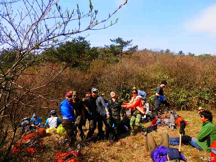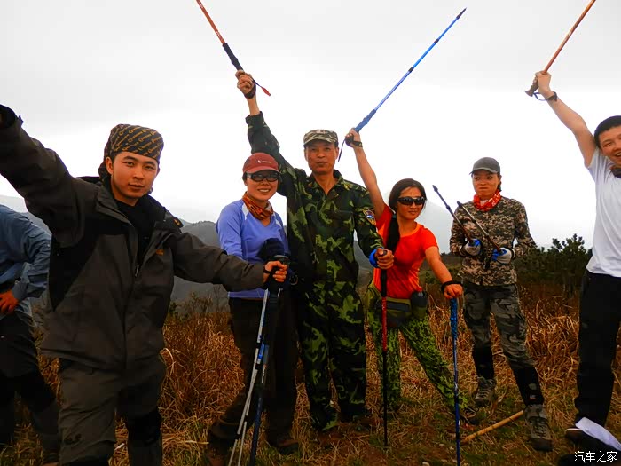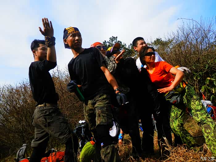 从六股尖顶峰往五股尖的这一段路,真的很难走,根本分辨不出路在哪里。根据GPS事前划定线路,根据山势大家凭感觉行走在山脊的密不透风的灌木丛里。呵呵,可能是29名同学,人品都好吧,天气晴好,菩萨保佑,穿越出其的顺利。下午2:30分,部队到达了五股尖西侧的草甸上,然后轻装冲顶。在五股尖顶峰,大家拍照留念。这五股尖及其周边山峰众多,是一个典型的高山地区,道路甚少,多数地方人迹罕至,如无向导带路,的确很容易迷失方向,但由于五股尖高耸陡峻,风光秀美,所以近年来吸引着不少登山爱好者前来攀爬、挑战这一景德镇的最高峰。约下午3:30分,大家开始下山。