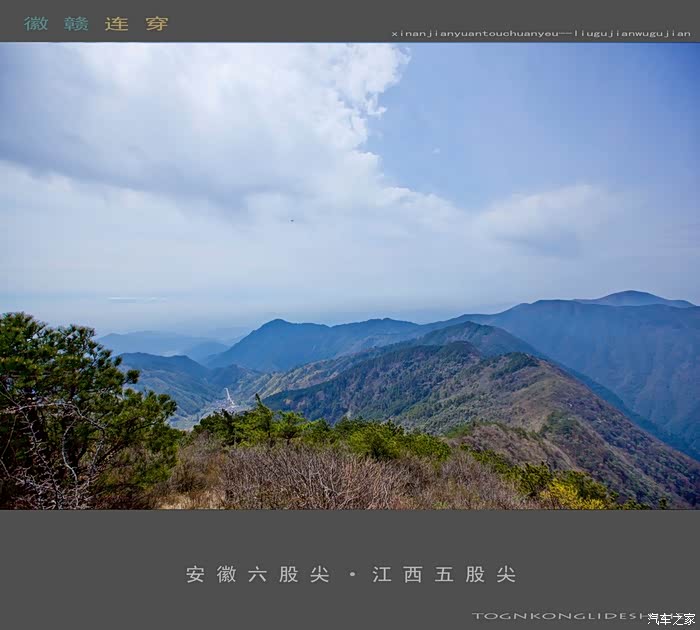 皖赣连穿就是指从安徽休宁县鹤城乡冯村上六股尖,然后直接沿着山岗徙步到皖赣两省交界的五股尖,再下山到江西景德镇市瑶里镇的汪湖村。(说明:这样直接穿越,无向导。但如果单独走六股尖,或五股尖都有向导可找。)