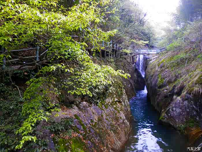 接着是一路向南。从纪念碑处右转向上攀爬约十分种后,见叉路右拐向南前进,约半个小时,你能听见瀑布的声音。这个瀑布就是六股尖山腰著名的龙井潭瀑布。瀑布从数十丈高的崖头倾泻而下,颇为壮观,为新安江源头第一瀑。瀑布高300余米,分数层从山顶跌宕而下,似白龙出涧,轰鸣如雷,回荡幽谷,极为壮观。瀑下碧波荡漾,灌木成荫。宋朝诗人杨万里有《新安江源头诗》赞:“金陵江水只咸腥,敢望新安江水清。皱底玻璃还解动,莹然酃渌却消醒。泉从山谷无泥气,玉漱花汀从佩声。水纪茶经者未识,谪仙句里万年名。”