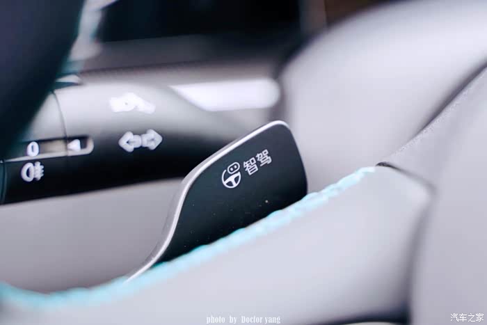 智驾的按键在方向盘的后方,类似于一个换挡拨片的非常醒目的位置,不会不小心误触,在高速路行驶时,当车辆提示可以开启智驾领航时,轻轻往上拨动就能实现,这个设计还是很讨喜的。