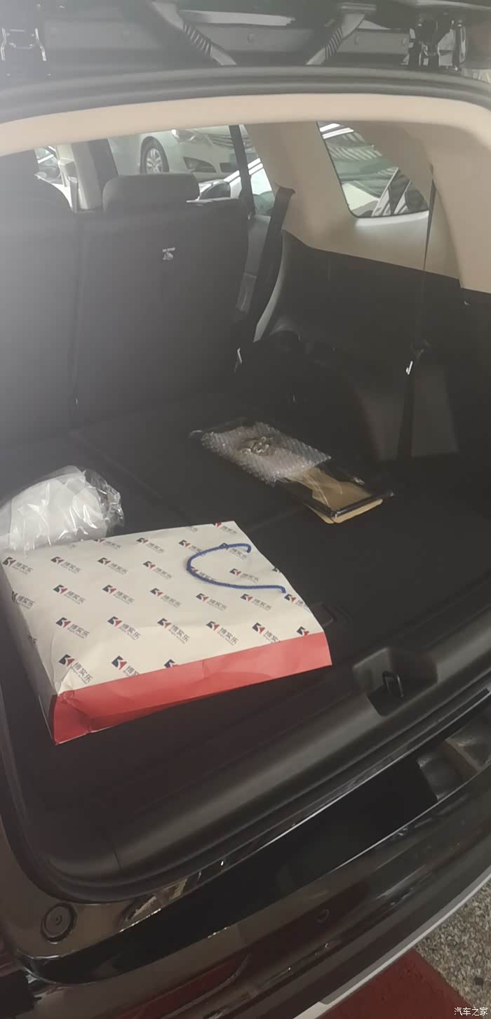 在4S店门口,我办手续(交钱)的时候拍的,旁边君威感觉就是小弟啊,这个尺寸家用足够足够了。为什么要买七座,可以当5座用,放倒2座应急使用(7座就像核武器,不是谁家天天打核武器,但是一定要有啊!)应急啥的真的可以。
