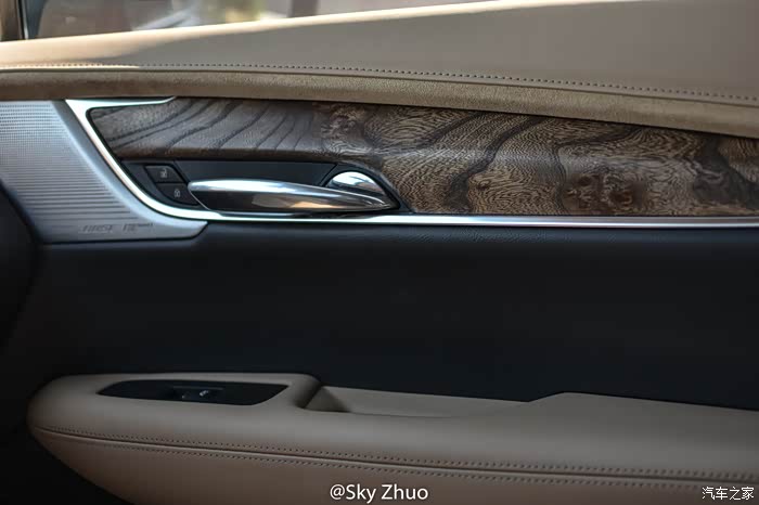 门板内衬从上到下又皮,翻毛皮,实木,皮拼合而成,确实是十分考究。图片里没有展示到的还有翻毛皮车顶,是不是Alcantara不得而知,但是从质感和性价比而言属实是同级别独一份。
