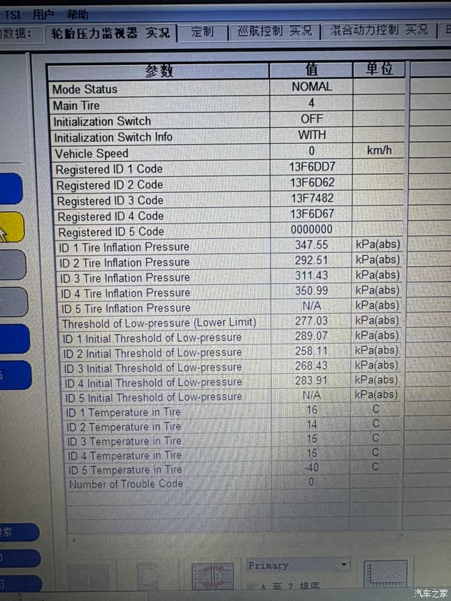车子前段时间因为胎压传感器故障,一直亮胎压灯,也可以通过软件读取数据,还是有些实用的